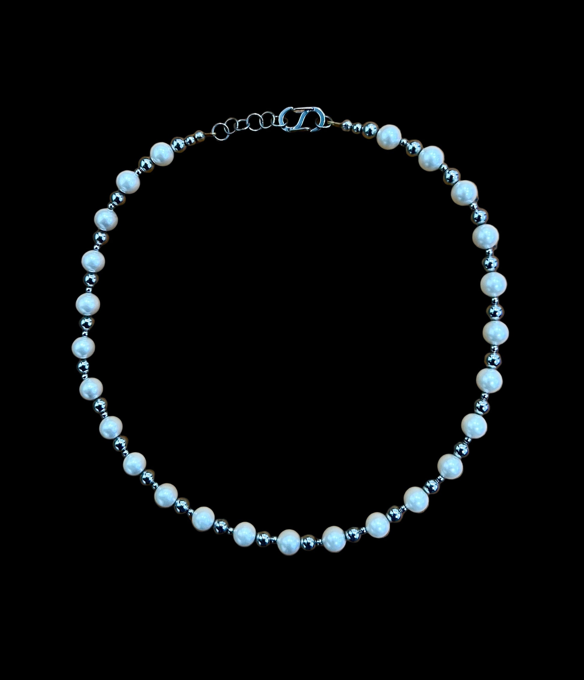 The perfect balance between classic elegance and modern strength. Eterna combines natural pearls with stainless steel beads, creating a timeless piece that reflects light, style, and character. Ideal for elevating any look with subtlety and power.